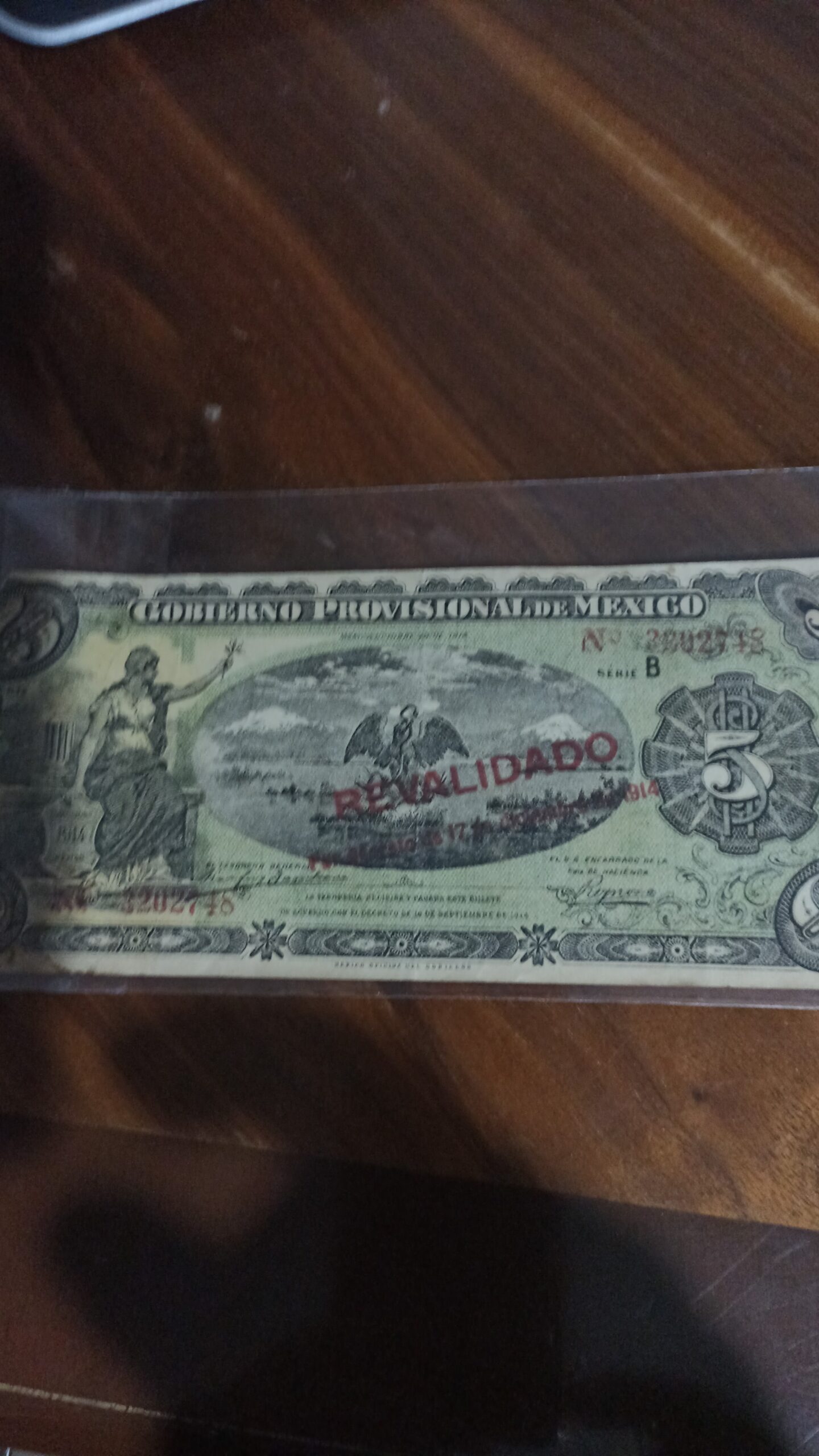 billete de coleccion cinco pesos gobierno provisional de mexico año 1914