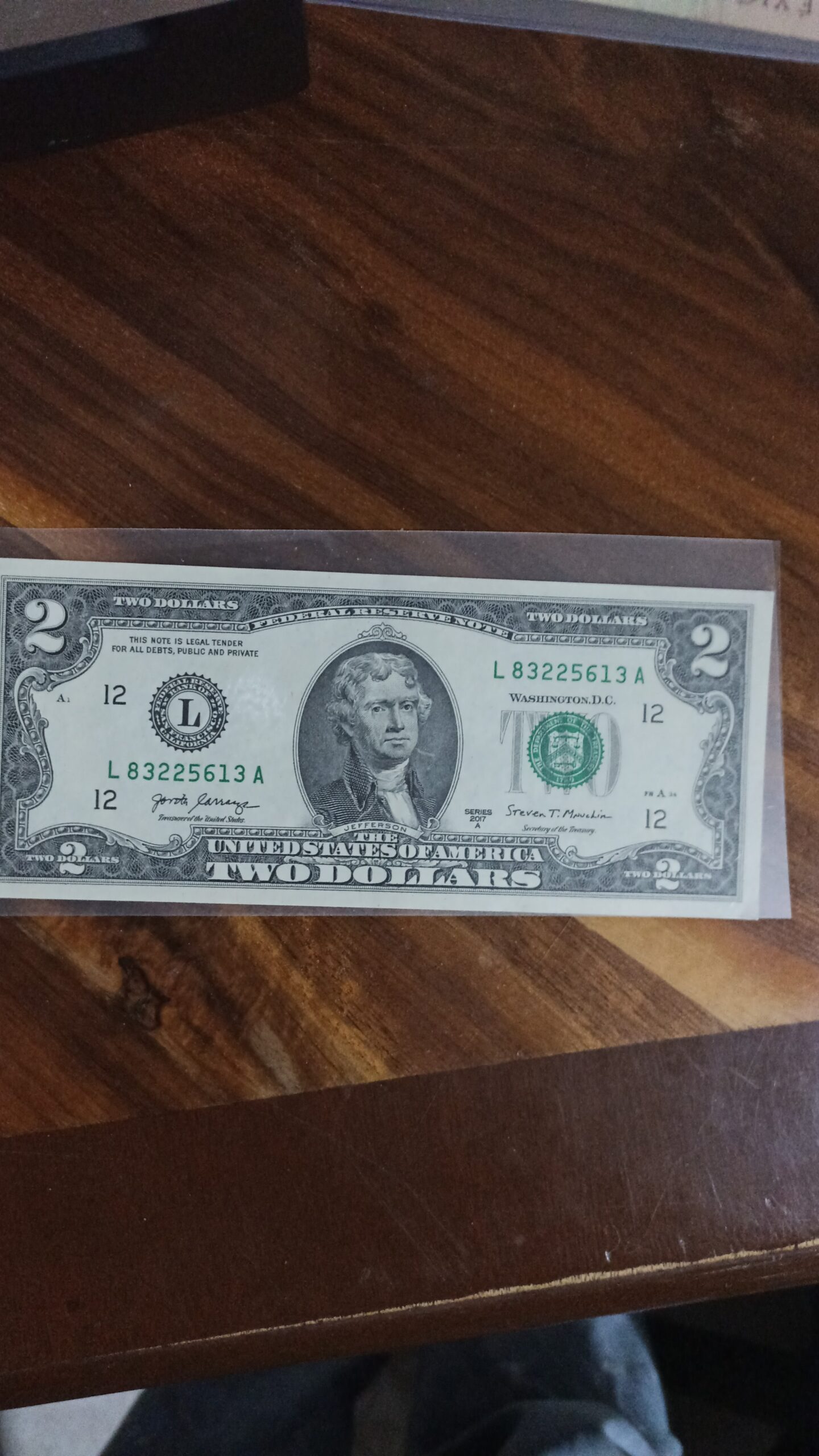 BILLETE DE COLECCION DOS DOLLAR JEFFERSON AÑO 2017