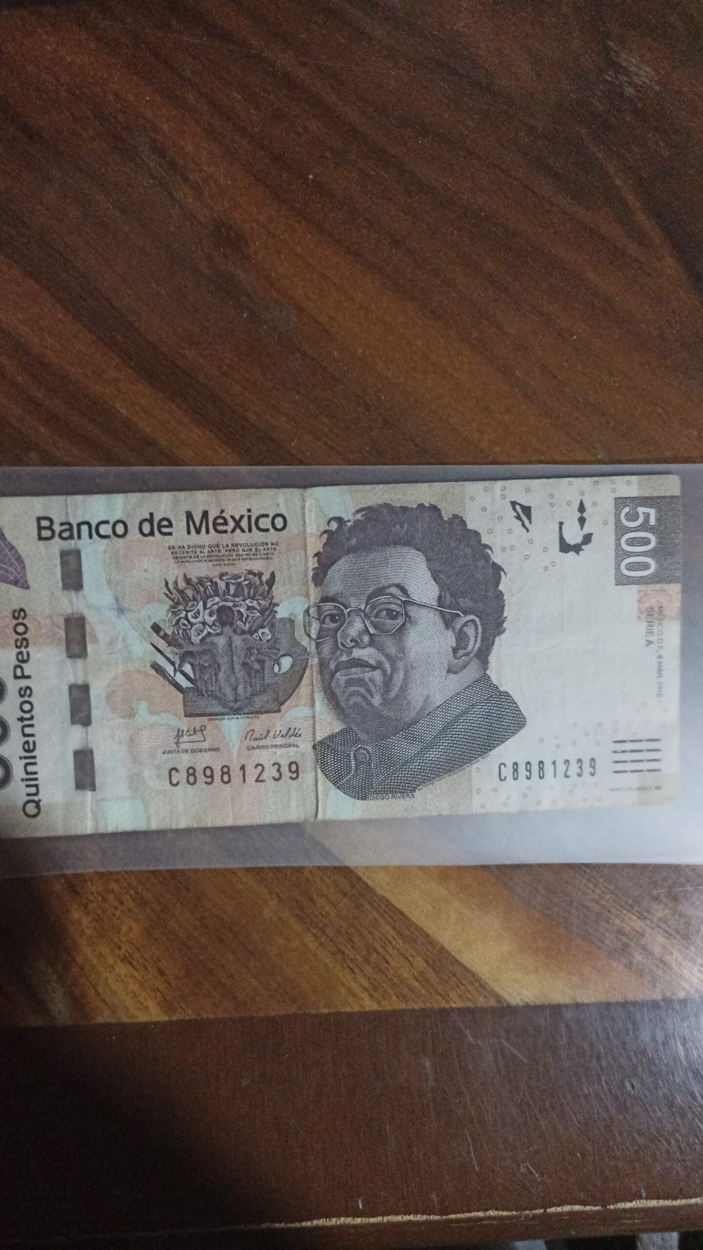 BILLETE DE COLECCION QUINIENTOS PESOS DIEGO RIVERA SERIE A AÑO 2010